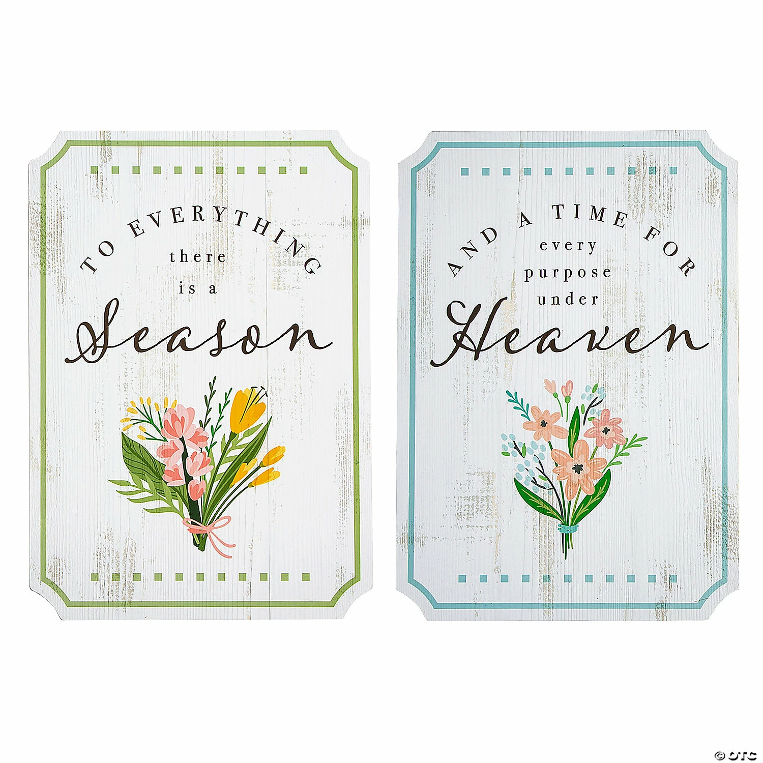 This set of lovely signs will complement your cottagecore home decor motif, or will add a splash of cottagecore charm to your existing decor. Featuring the faith-filled message of βFor everything there is a season – and a time for every purpose under Heavenβ along with charming imagery, this sign set is a thoughtful housewarming gift. Wood. (2 pcs. per set) 14″ x 20″ Includes hardware for hanging. Β© OTC
