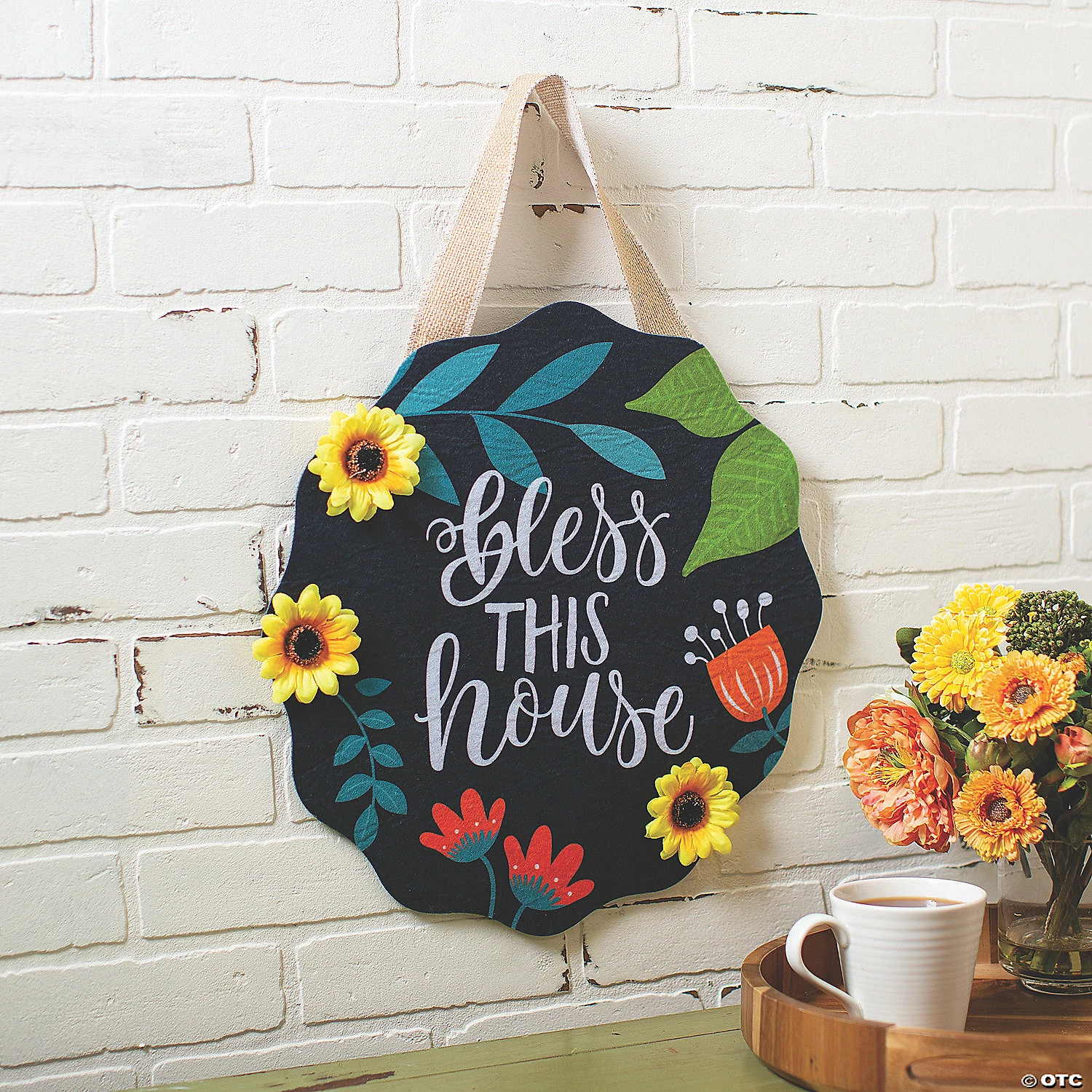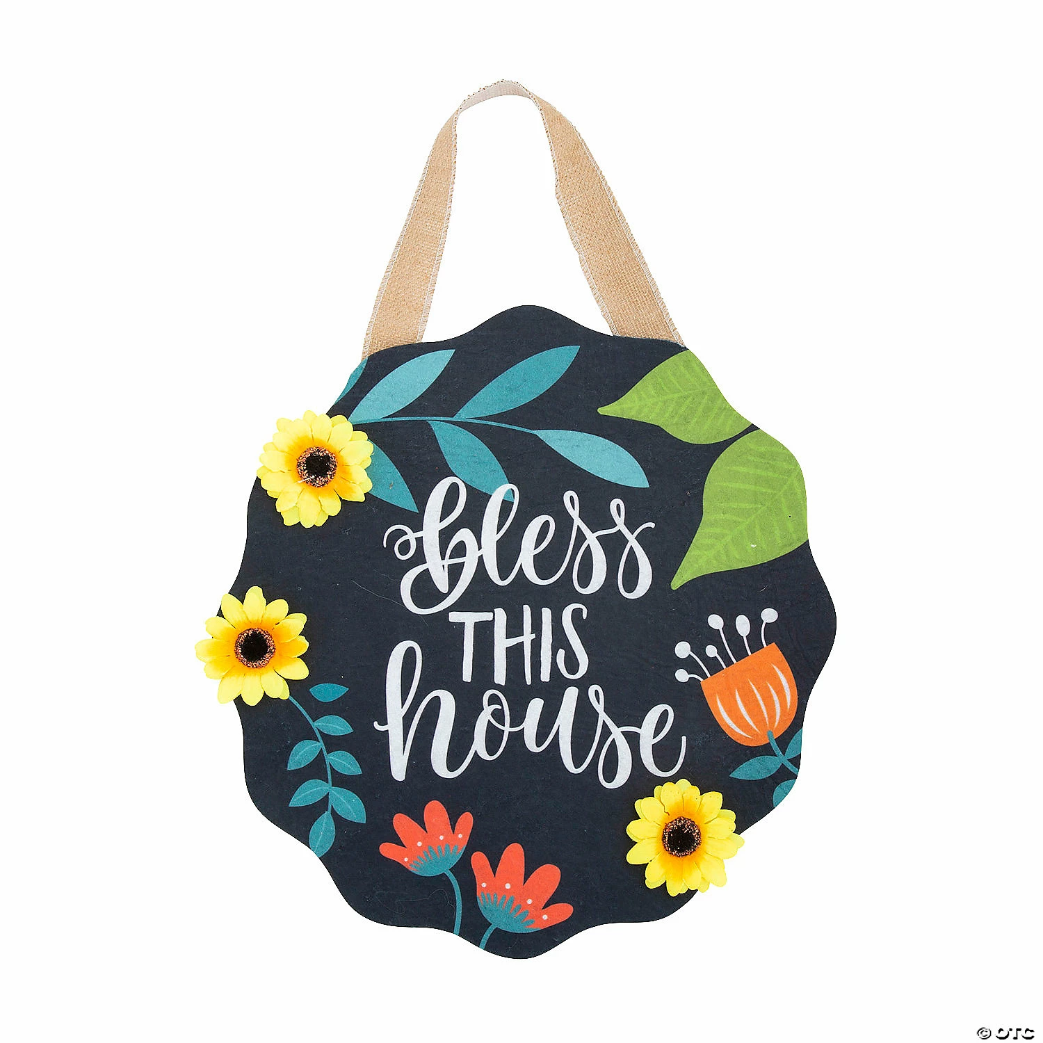 Welcome fall blessings with an autumn wall or door hanging decoration. With a burlap hanging ribbon and bright fall colors, this Bless this House sign is a unique alternative to a wreath and will add country charm to any home dΓ©cor. Hang it in your own home or give it to a friend or neighbor as a housewarming gift. Polyester. 17″ diam. with 18″ burlap ribbon hanger. Β© OTC