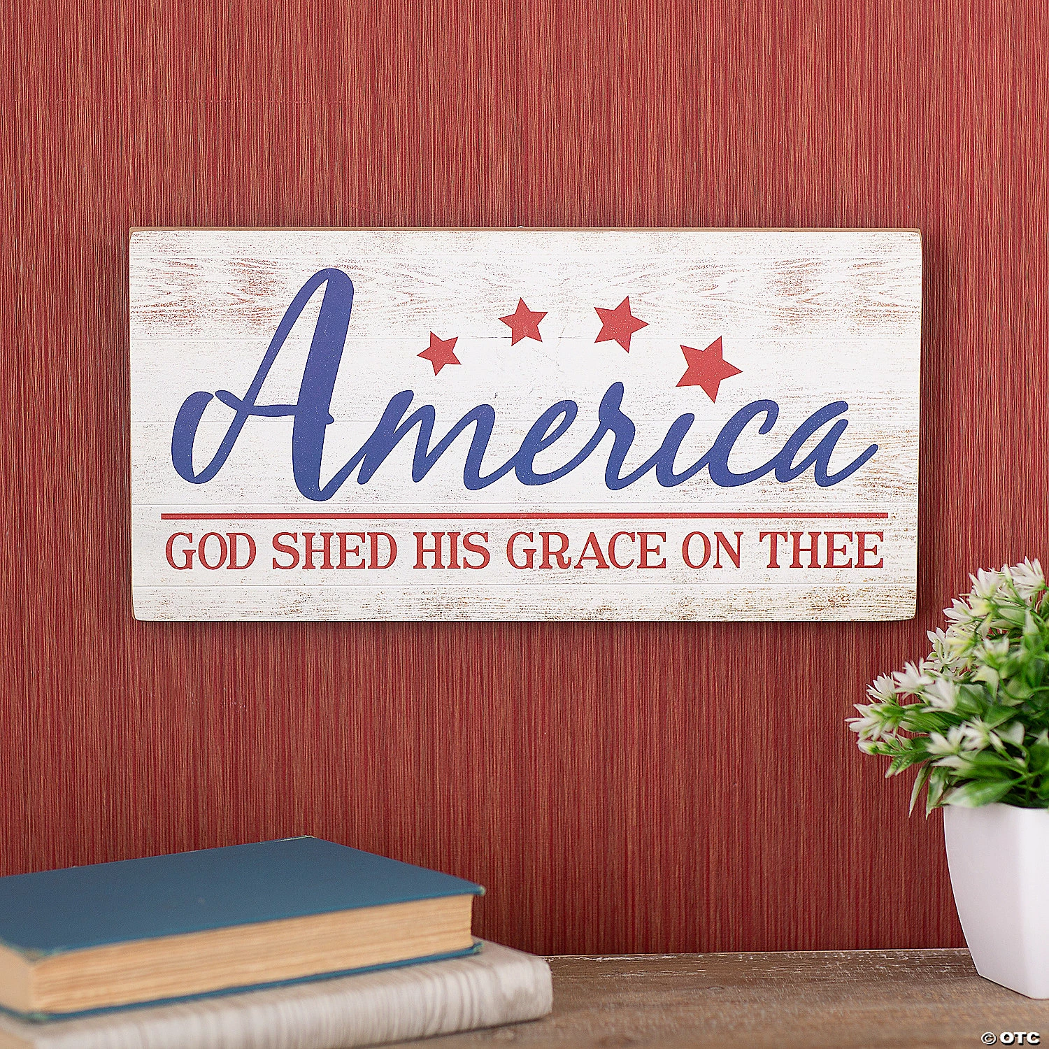 Ready to hum βAmerican the Beautifulβ several times a day? Display this attractive sign featuring the patriotic sentiment, βAmerica, God shed His Grace on theeβ in a prominent interior space to help spread faith-filled patriotism. This sign makes a great housewarming gift and is an excellent home decor addition for the Fourth of July. Wood. 14″ x 7″ Includes hardware for hanging. Β© OTC