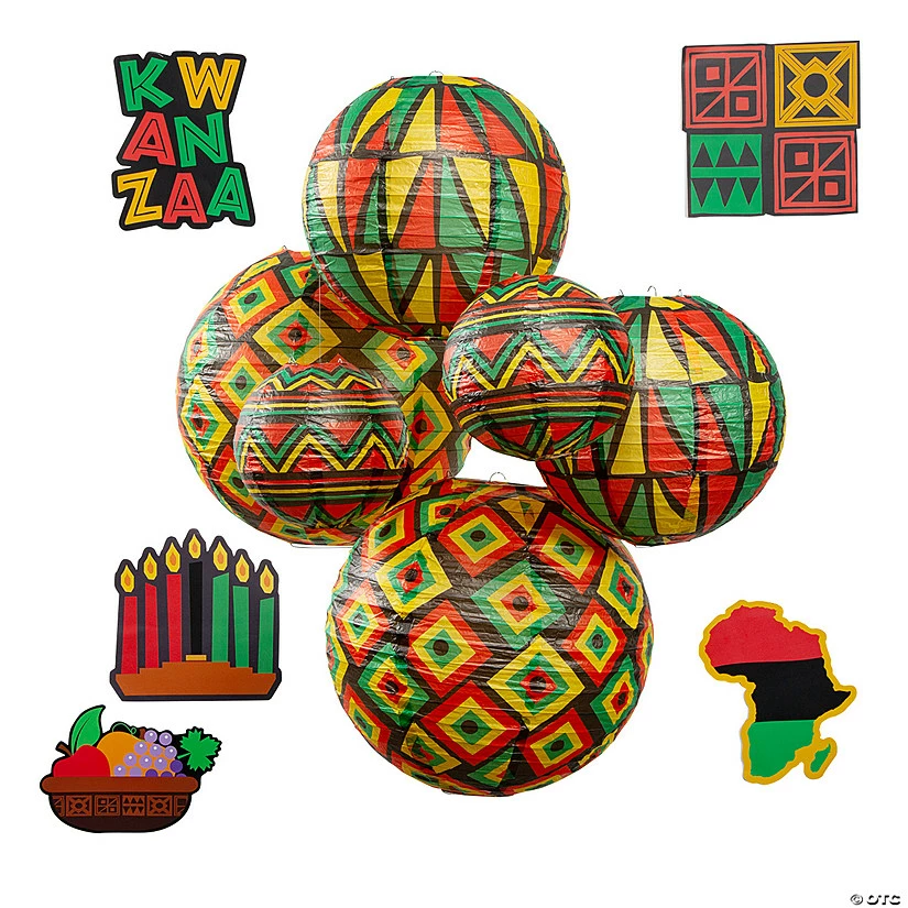 Bring extra love and light to your unity celebration with festive Kwanzaa decorations featuring paper lanterns and cutouts, including a kinara and Africa, in the colors of red black and green. Pair this kit with other Kwanzaa celebration supplies found on this site. Cardstock and tissue paper. (11 pcs. per set) 8″ x 8″ – 16″ x 16″ Β© OTC