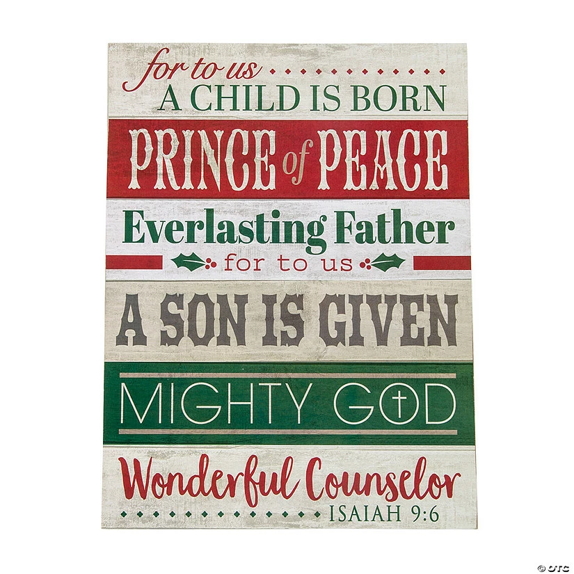 Celebrate the many holy names of Jesus with this lovely sign featuring Scripture from Isaiah 9:6 in which some of the many names of Jesus are revealed. A great sign to add to religious Christmas home decor, this sign also makes a thoughtful Christmas gift or housewarming gift around the holidays. Wood. 9″ x 1/4″ x 12″ Includes hardware for hanging. Β© OTC