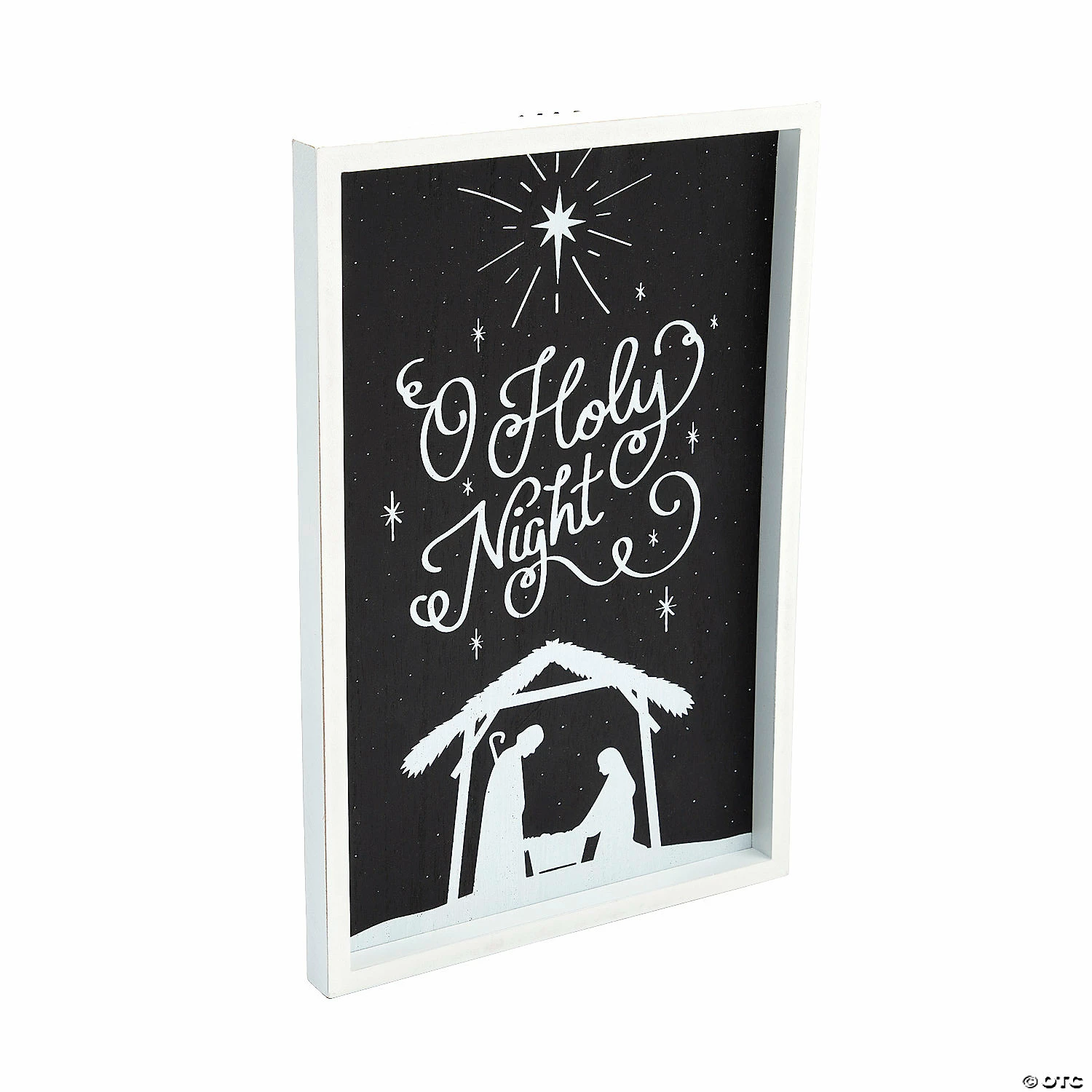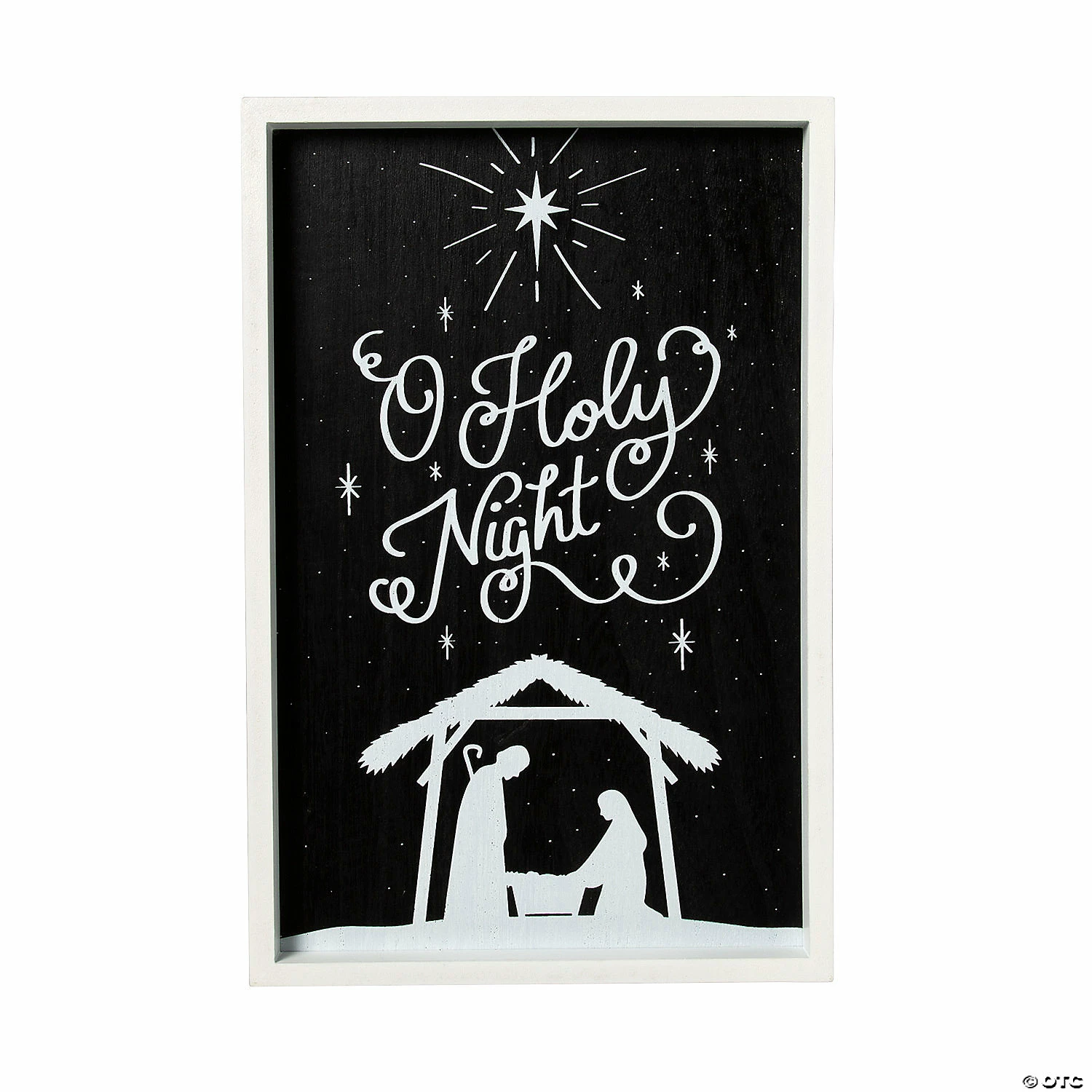 This simple yet ornate sign is a great way to bring the real meaning of Christmas into your Christmas decorations. Featuring the nativity scene silhouette under the North Star and βO Holy Nightβ in elegant script, this holiday home dΓ©cor serves as a beautiful reminder of why we really celebrate Christmas. Wood. 8″ x 12″ Β© OTC