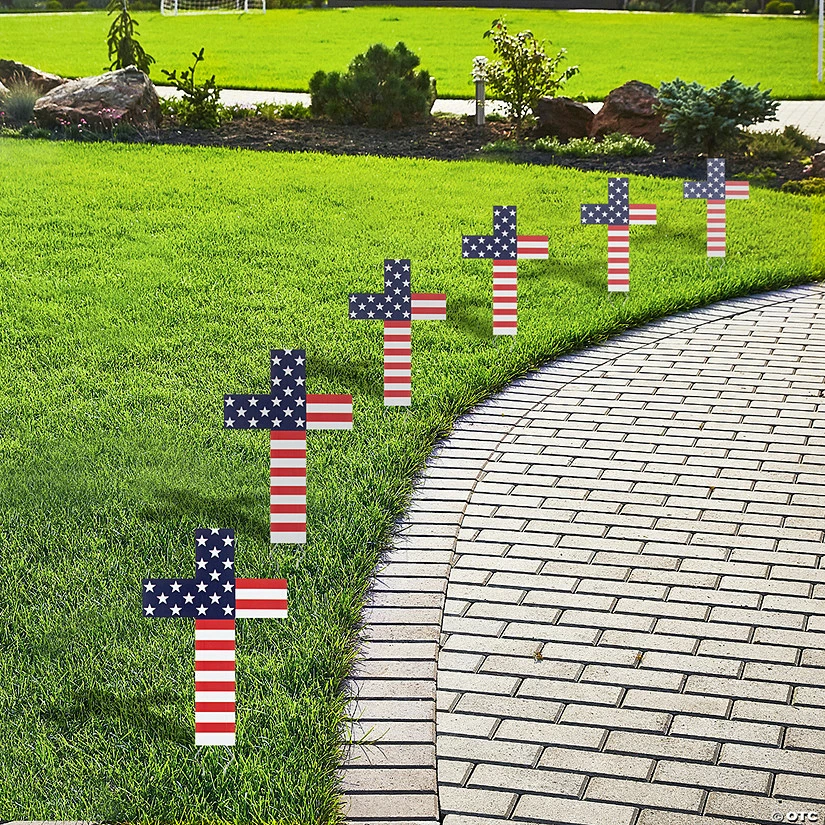 Cheap π Patriotic Flag Cross Yard Signs β 6 Pc. β¨
