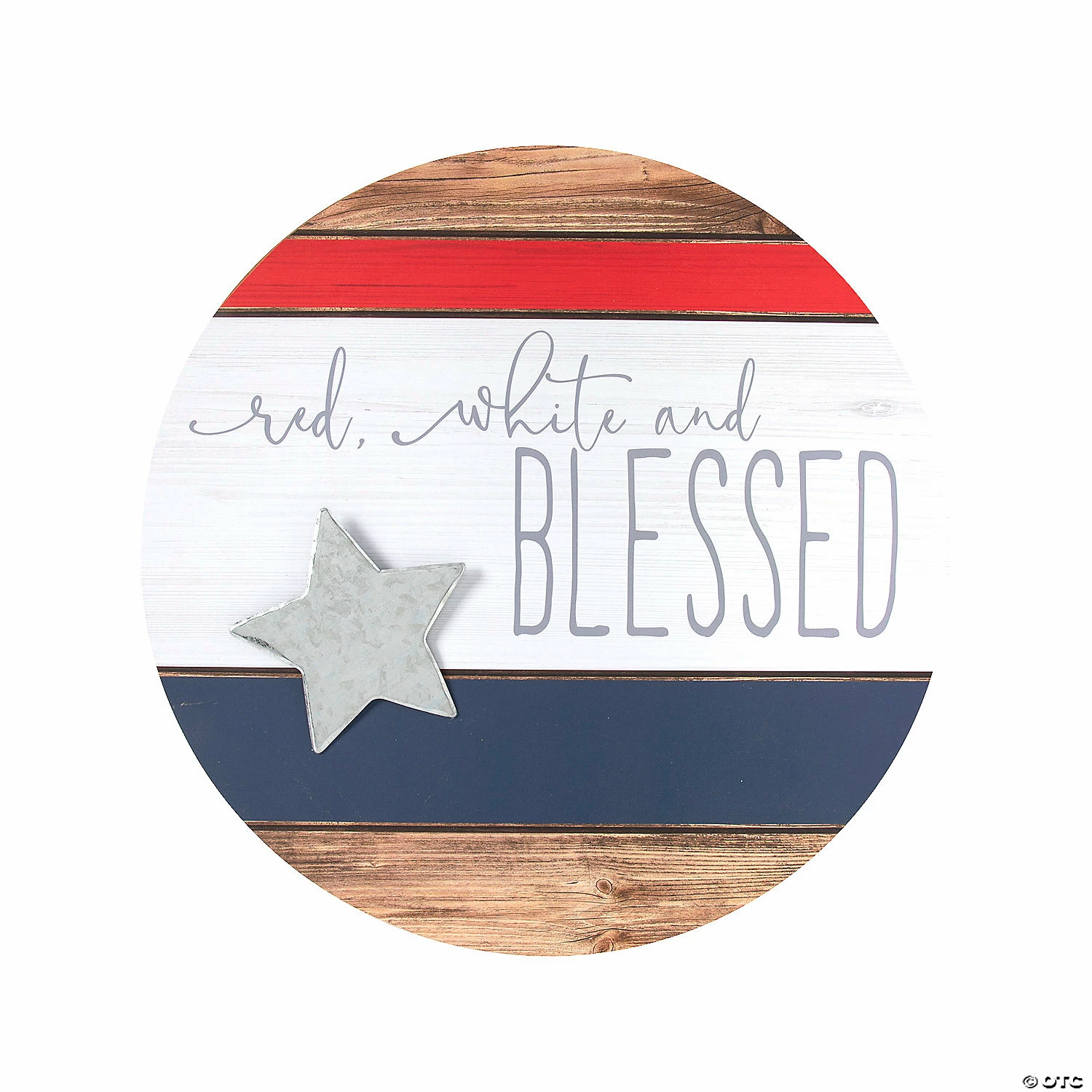 Show off your faith and patriotism with this attractive door sign thatβs perfect for the Fourth of July but can be displayed any time of year. Featuring the message βRed, white & blessedβ along with red, white and blue colors in the background and an eye-catching star shape, this round door sign is a lovely addition to any believerβs door decor. Wood. 12″ diam. Β© OTC
