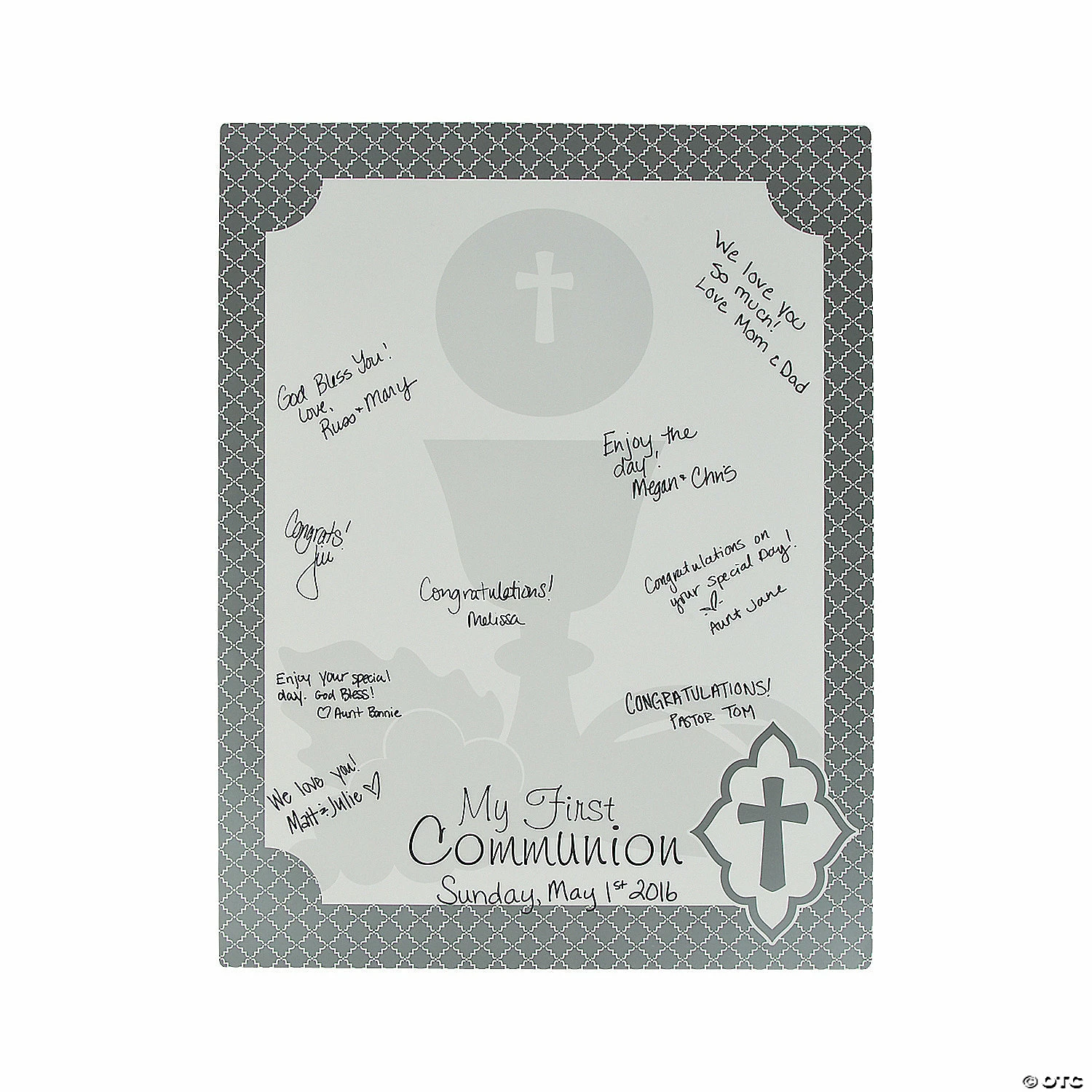 Celebrate your little oneβs First Communion with this Silver Cross First Communion Sheet. The perfect addition to your celebration, hang up this cardstock sign for friends and family members to sign! 15 1/2″ x 20 1/2″ Β© OTC