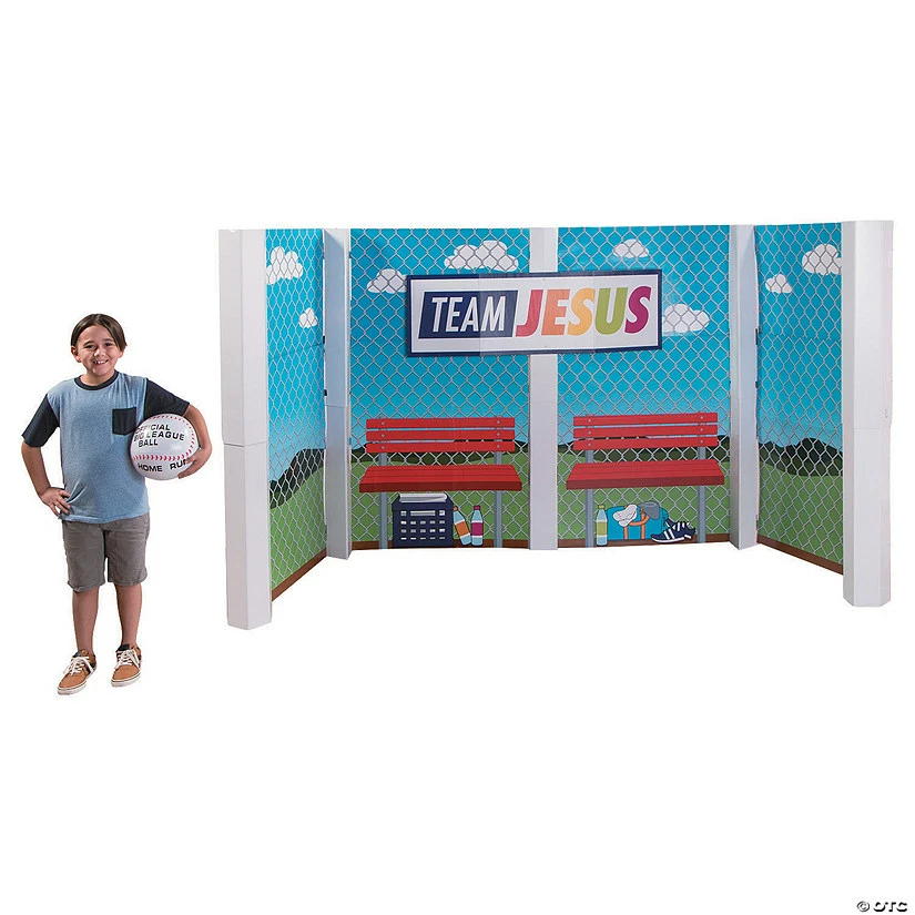 Planning a sports Vacation Bible School theme? Really make a scene with this huge stand-up! Featuring a classic baseball dugout it’s printed with a “Team Jesus” sign. It’s a great way to create photo ops to remember their time at VBS. Cardboard. 9 ft. 11″ x 5 ft. Stand-ups are one-sided with a brown cardboard back. Simple assembly required. Β© OTCSports VBS Large Dugout Stand-Up Instructions