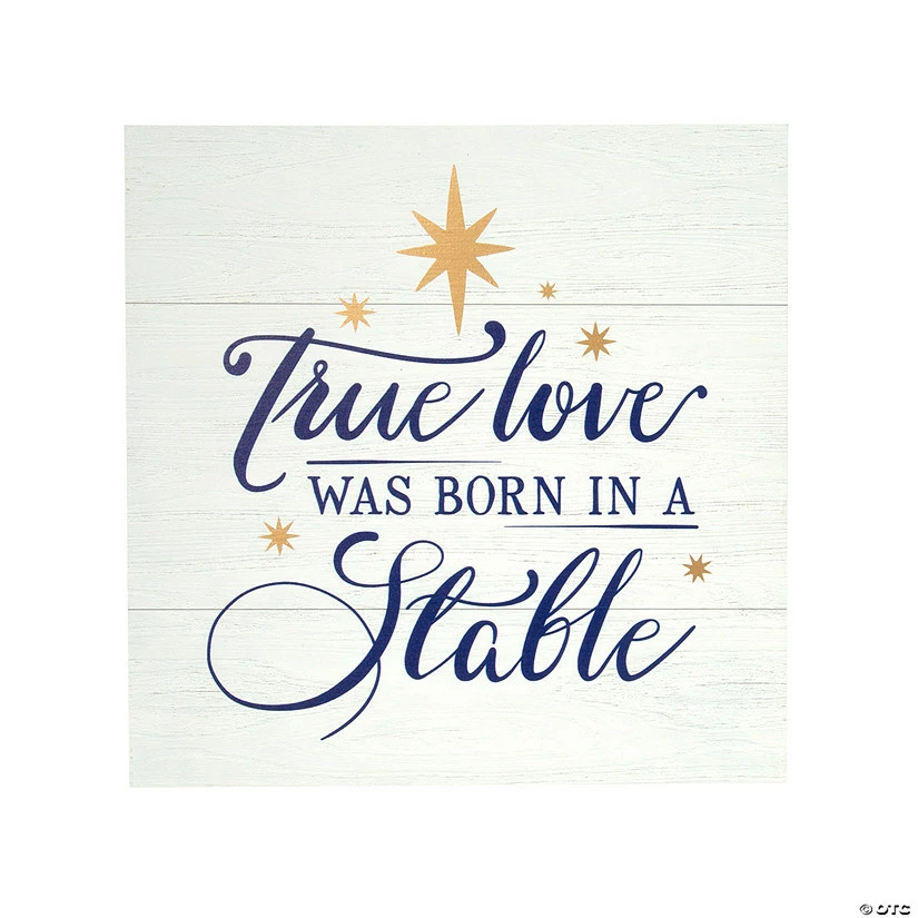 This holiday season and beyond, remember where true love all began: in a stable with the birth of our Lord and Savior, who loves us so much that He died for our sins. This sign doubles as that reminder and as a beautiful addition to your Christmas decorations at home, church or work. Wood. 8″ x 8″ Β© OTC
